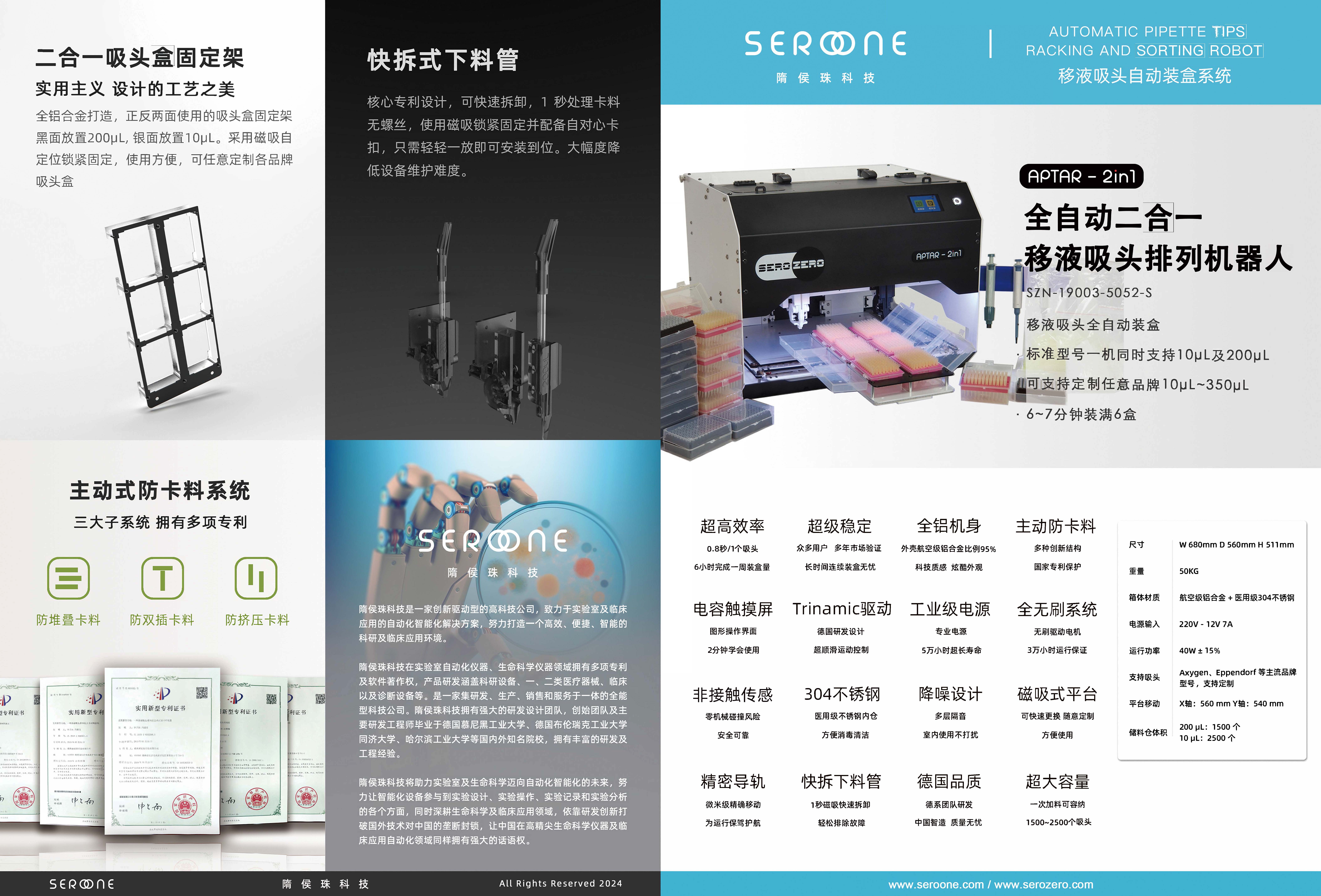 一、用途:用于全自動、快速地將散裝移液器吸頭填裝進吸頭盒中,可支持10ul~350ul吸頭裝盒。