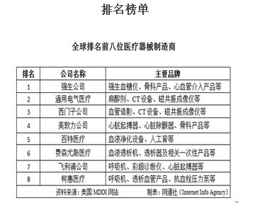 全球醫(yī)療器械八大金剛排名 強(qiáng)生居榜首
