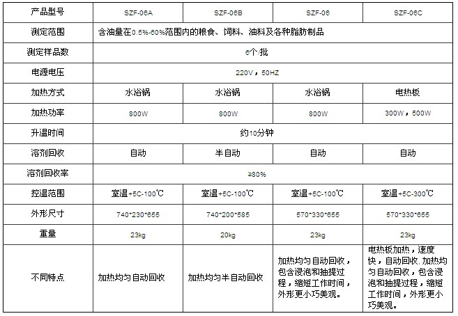 F-06系列脂肪測定儀主要有加熱抽提,溶劑回收和冷卻三大部分組成。操作時可以根據試劑沸點和環(huán)境溫度不同而調節(jié)加熱溫度,試樣在抽提過程反復浸泡及抽提,從而達到快速測定目的。