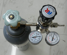 1、 將二級(jí)氣體減壓閥與混合氣體鋼瓶連接,確保無(wú)泄漏(圖1)。