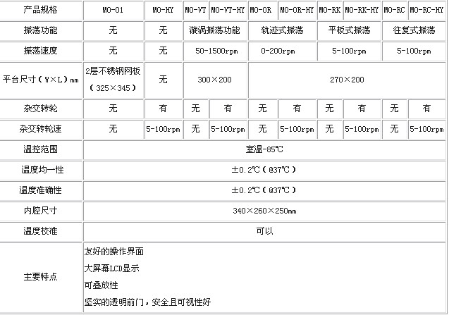 MO系列多款功能各異的培養(yǎng)箱可供實(shí)驗(yàn)人員選用,可具備雜交、多種振蕩功能,溫度均一性好,采用數(shù)顯微處理器控制,結(jié)構(gòu)緊湊且可疊放。