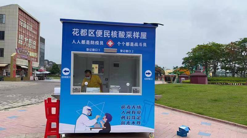 5月23日,花都區(qū)添置第一批5個專用核酸采樣屋,分別放置在來又來商場、新世紀廣場、融創(chuàng)樂園、雅樂城廣場、花東市場,當天下午3時正式投入使用,受到市民群眾的熱烈歡迎,這也是 廣州市第一批專用核酸采樣亭。